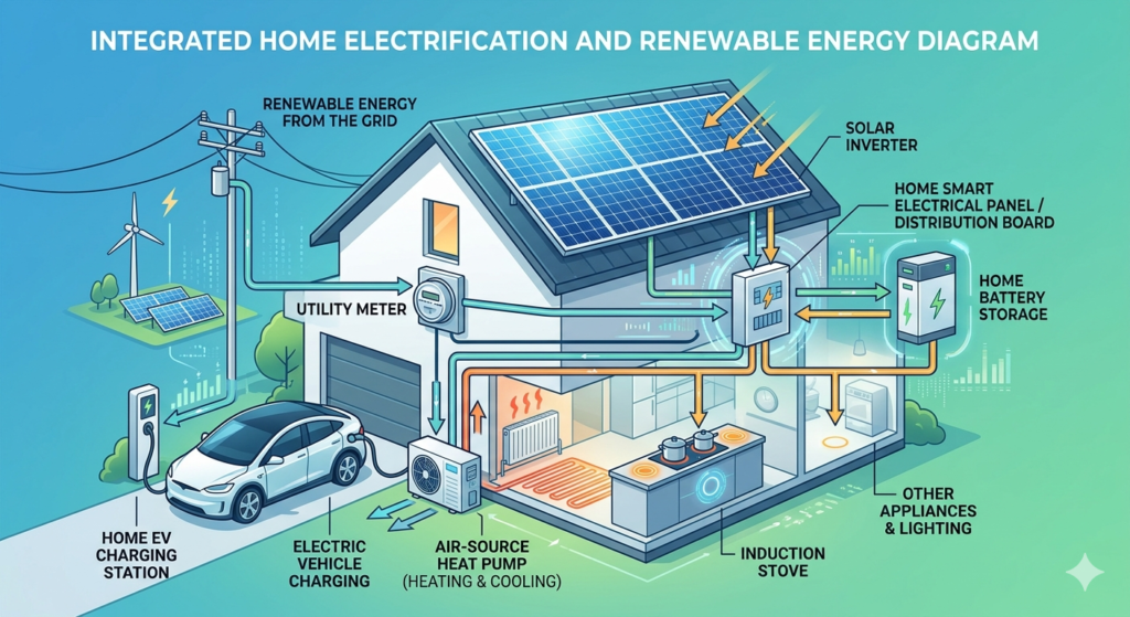 This transition is made possible through electrification. Electrification means shifting all residential energy loads onto the electrical grid. While electricity generation used to rely heavily on coal, modern electrical grids are rapidly incorporating wind, solar, and hydroelectric power. Therefore, an all-electric home automatically becomes greener every year as the utility grid cleans up its energy mix.