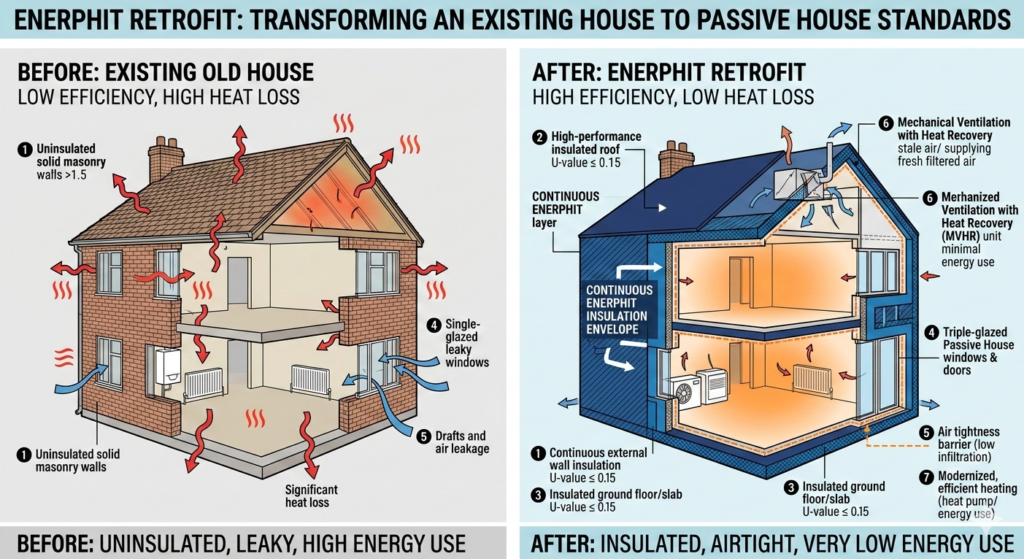 EnerPHit is specifically designed for retrofits. It relaxes the energy demand requirements slightly to account for the constraints of existing architecture, while still demanding the same high quality of components and health benefits. If you are renovating an old Victorian or a 1970s ranch, EnerPHit is likely the certification you should be looking at, rather than the new-build Passive House standard.