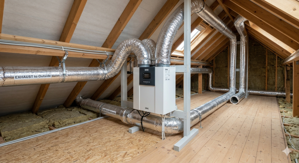 A properly designed, sized, and commissioned MVHR system should be virtually silent. If you can hear a loud rushing or humming noise from the ceiling vents, it usually indicates that the ductwork is too narrow, the fan is undersized and overworking, or the system lacks appropriate acoustic silencers.