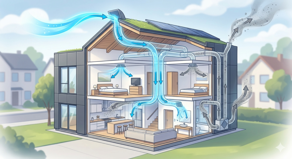 Opening a window solves the air quality problem but completely ruins the energy efficiency you just paid for, letting your expensive heating fly out into the winter sky. To resolve this paradox, modern building physics relies on a highly specialized piece of technology. Understanding how to breathe safely and comfortably in a sealed, energy-efficient building requires looking at the “lungs” of the modern home.